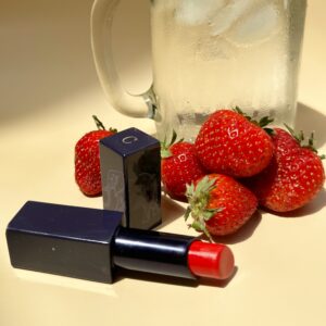 Color: I had so much fun photographing this lipstick next to those juicy strawberries. What an amazing color match. The folks at Pantone would be proud!